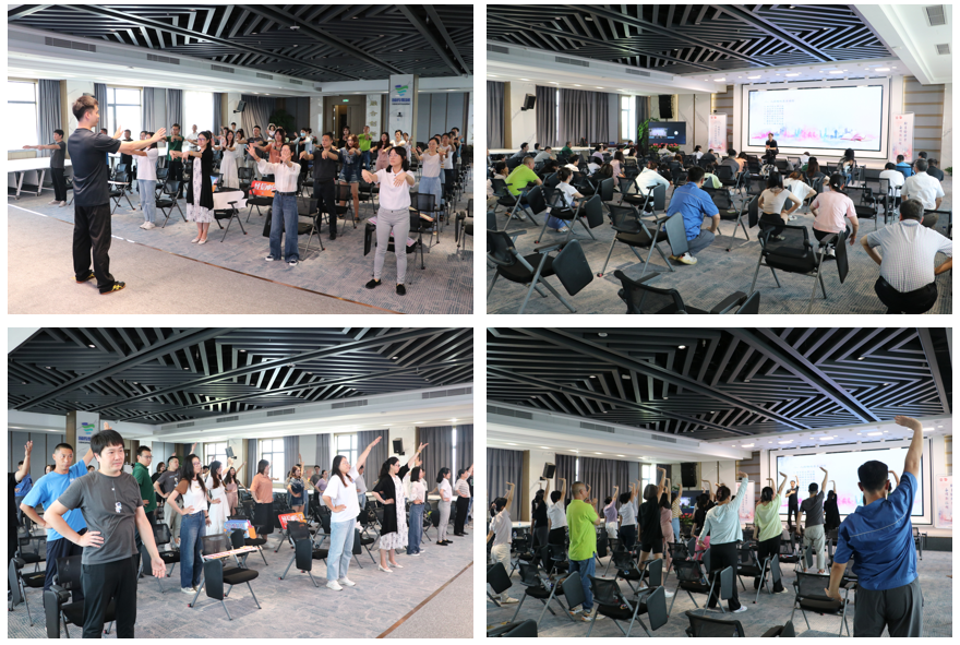 本次活动特邀国家级运动健将、国家武术一级裁判员熊绍俊老师,以理论与现场实践相结合的方式进行教学。熊老师详细讲解了八段锦的练习方法和注意事项之后,带领职工们进行现场练习,帮助职工们更好地掌握动作要领。刚开始练习时,职工们还未完全获得动作要领,经过熊老师一招一式的详细演示和精心指导,职工们的动作整齐划一、精准到位,大家很快就融入到了练习八段锦的氛围中。