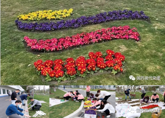 在国药EVO视讯总部办公区域草坪内,开展景观花坛栽种义务劳动。团员青年以鲜花为笔、草地为纸,画出色彩绚丽的国药集团“关爱生命·呵护健康”的品牌LOGO,绘就出一道靓丽的绿色风景线,给景观花坛增添了勃勃生机,彰显国药EVO视讯企业文化。