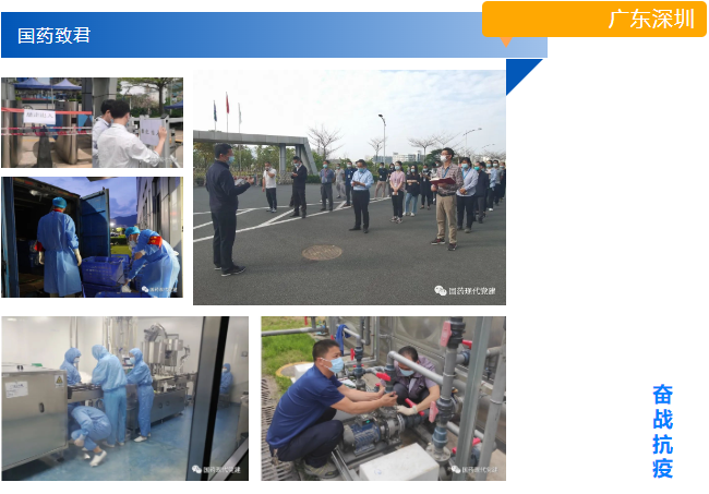 国药致君与时间赛跑,一边加强防疫防控,一边迅速组织完暂定生产前的生产、检验工作。致君坪山液一车间的11名员工、液二车间的10名员工为应对疫情变化,通宵达旦连夜进行灌装生产,两个车间分别完成了2.8万瓶及12.5万支的产量,努力将接下来一周暂停生产的影响降至最小;同时,观澜、坪山两地所有公共系统相关人员三班倒进驻厂区,将确保后续生产顺畅。