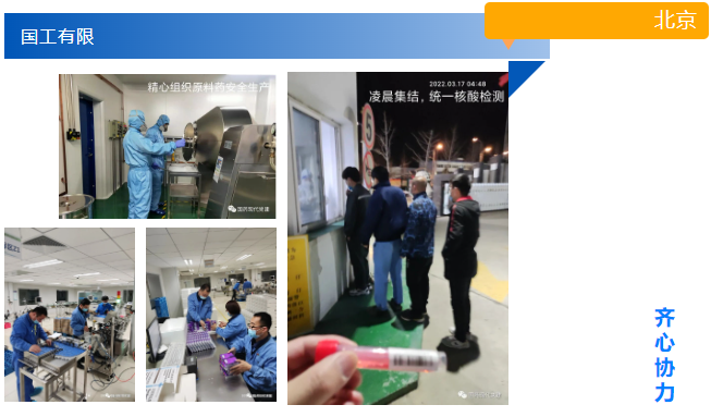 国工有限驻厂职工热情无比高涨,每天既保证原料药、制剂的生产进度,又按时完成全员核酸检测。由于廊坊市所有物流企业全部按下了暂停键,面对集采品种右美托咪定注射液发货困难,党员干部发挥先锋模范作用,担当尽责,一个电话接着一个电话地协调,经过不懈努力,最终紧急运出300件货品,避免了集采品种断货的风险。党员干部职工的团结、责任、担当体现的淋漓尽致