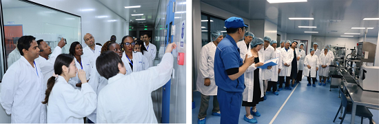 研修班成员实地参观了CGMP生产车间和QC实验室,认真听取了讲解员的介绍,并对各生产环节表现出浓厚的兴趣,纷纷驻足拍照、提问交流。通过全方位的参观和学习,研修班成员深刻感受到国药EVO视讯在硬件设施建设、技术实力以及产品创新方面的优秀实力,对中国制药工业发展有了更深层次的了解,并对中国制药工业的未来发展充满了信心。