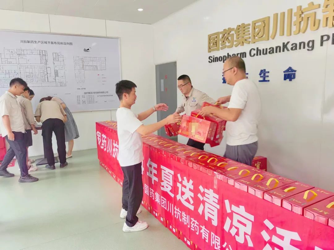 在成都,国药川抗党支部书记陈茂棠带领工会委员为生产一线和相关部门送上清凉饮料,感谢大家不畏酷暑、坚守岗位,为公司生产经营和发展做出贡献,要求各部门要加强高温防暑降温、中暑救防、职业病防治等知识的广泛宣传,认真落实防暑降温的各项具体措施,切实做到“清凉”与“生产”同行,“健康”与“发展”同行。