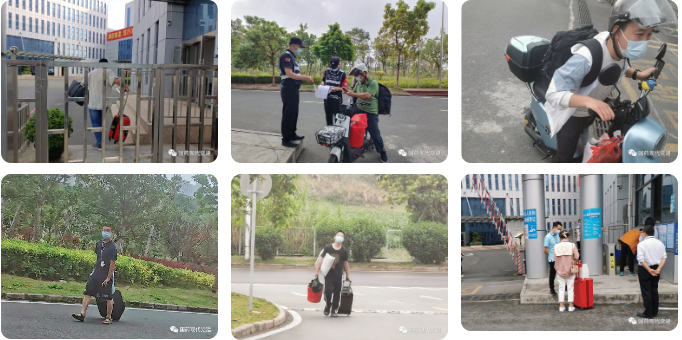 亲吻孩子,辞别父母,道一声“放心”,舍一身牵挂,逆向奔赴,勇毅前行。在返深道路封控的困难面前,他们秀出了“国药人智慧”的“七十二计”,有的骑上心爱的小摩托,有的大包小包手拉肩扛,有的甚至背起被褥徒步前行赶往“大家庭”,由此开启他们全新的“住宿生活”,仅在一天之内全部返回了工作岗位!这90名“最美铁军”用脚步丈量了国药致君全面复工复产的征途,用行动硬核吹响了企业全面复工复产冲锋号!